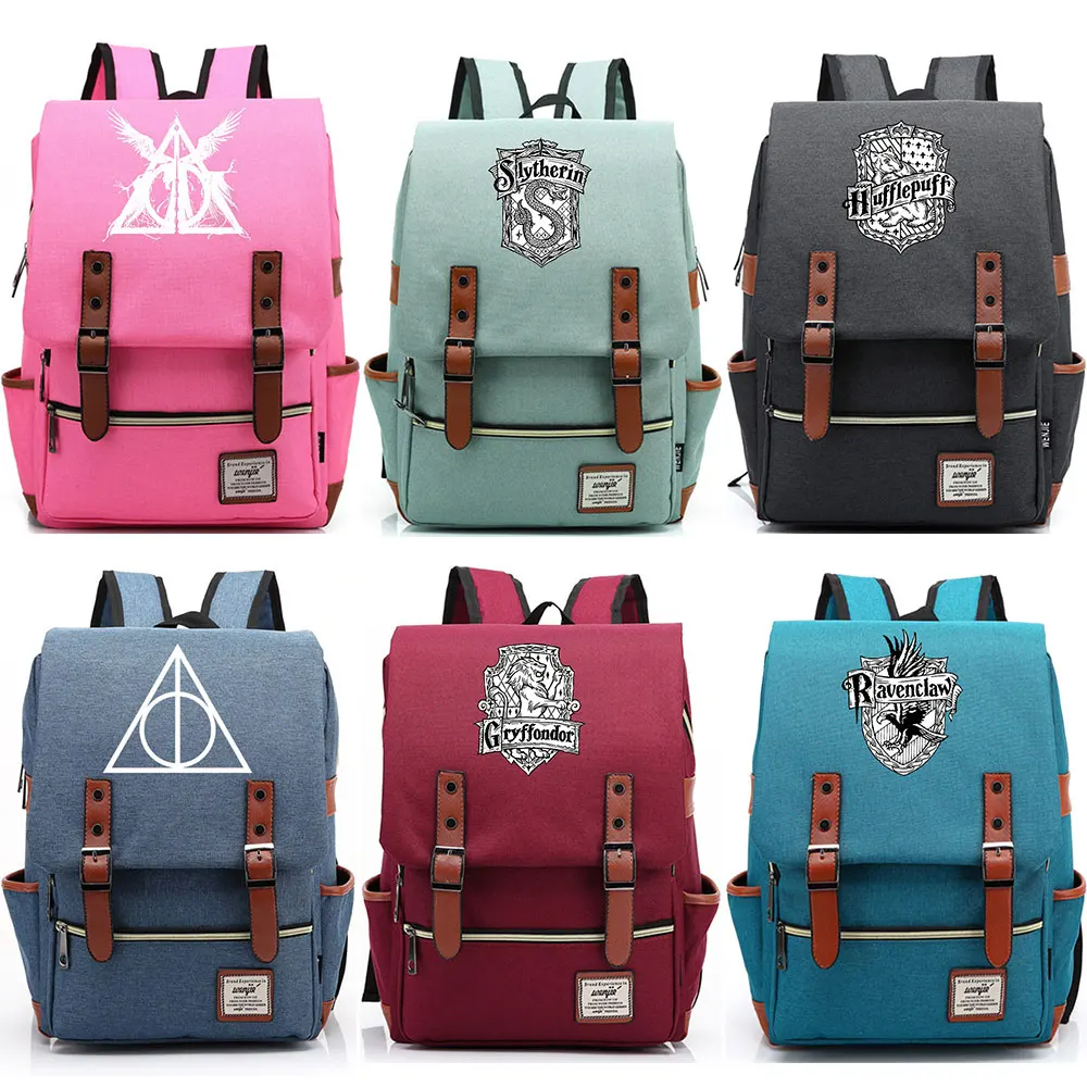 استعارات ل 2019 الأقداس المهلكة سليذرين جريفندور Hufflepuff صبي فتاة طالب حقيبة مدرسية المراهقين قماش النساء Bagpack الرجال على ظهره