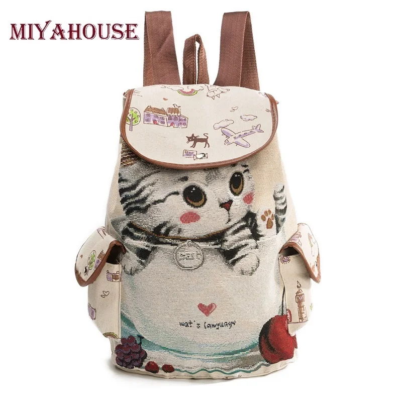 استعارات ل Miyahouse لطيف القط على ظهره النساء قماش ظهره الرباط الطباعة الظهر للمراهقات كبيرة قدرة المدرسة حقيبة